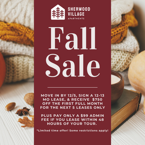 Start your next chapter at Sherwood Village Apartments and discover relaxing living in an ideal location. Select from newly upgraded studio, 1, 2, or 3-bedroom apartments featuring an open floor plan, washer and dryer connection, fully equipped kitchen, high-speed internet, and extra storage. Our community amenities include a sunlit swimming pool, a high-energy fitness center, an indoor basketball court, and package lockers. You'll love our Springfield, MO location, just minutes away from shopping, dining, and entertainment. Live your best life at Sherwood Village. We offer smoke-free living.